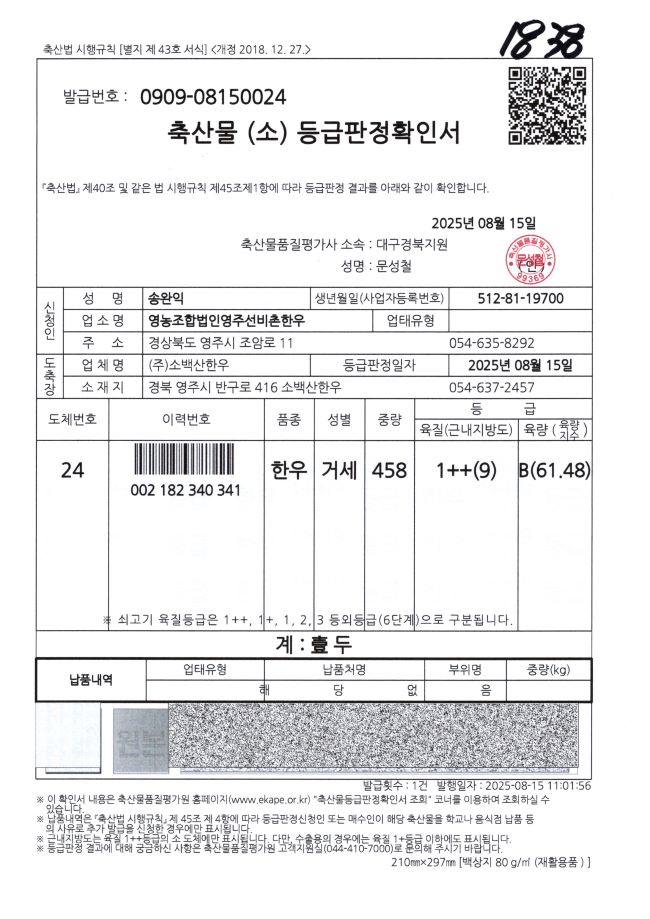 8/15 등급판정확인서 1++(9)B