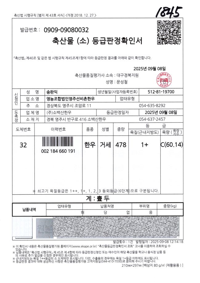 9/8 등급판정확인서 1+C