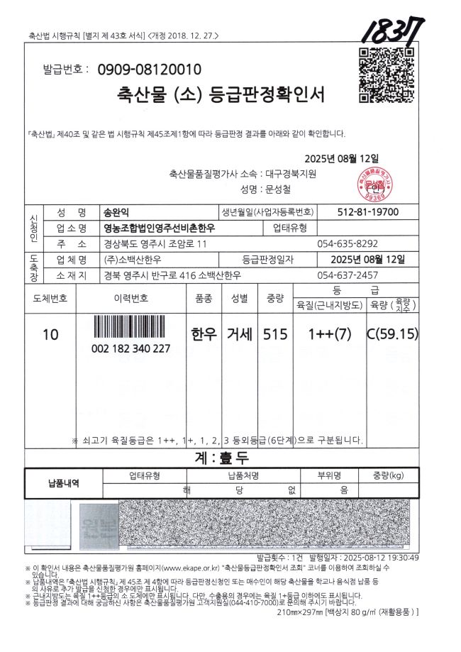8/12 등급판정확인서 1++