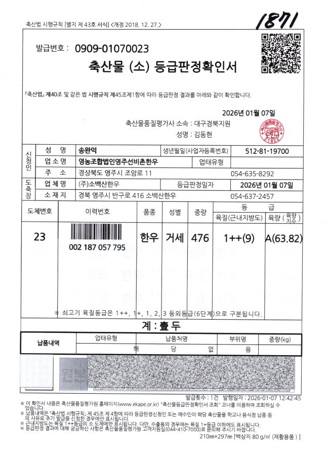 - 첨부파일 : 등급판정확인서0107 19A 001.jpg (109.1K) - 다운로드